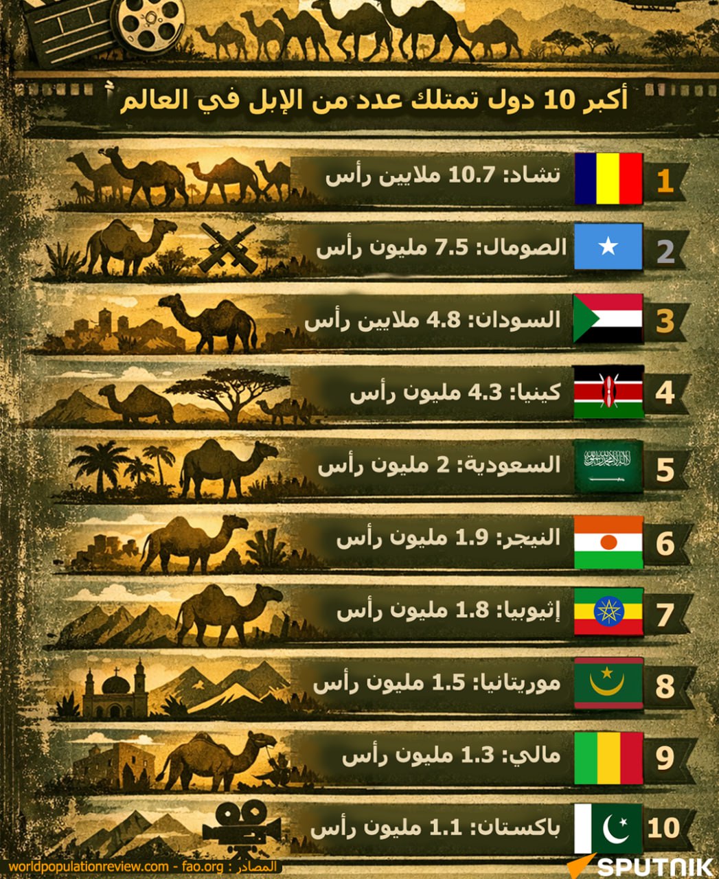 🌍 أكبر 10 دول من حيث أعداد الإبل عالميًا (وفق بيانات الفاو):