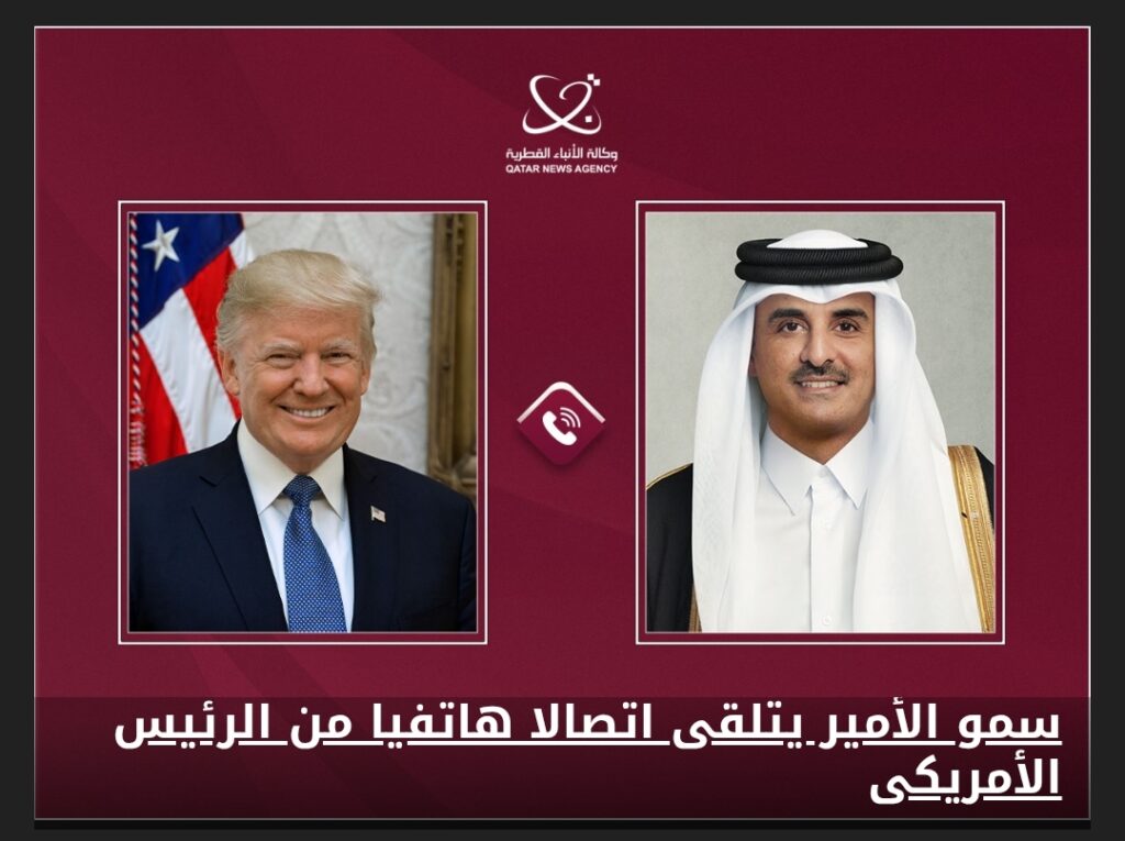 أكد أمير دولة قطر الشيخ تميم بن حمد آل ثاني خلال اتصال هاتفي مع الرئيس الأمريكي دونالد ترامب، ضرورة العمل على خفض التصعيد في المنطقة، ودعم المسارات والحلول السلمية للأزمات القائمة.