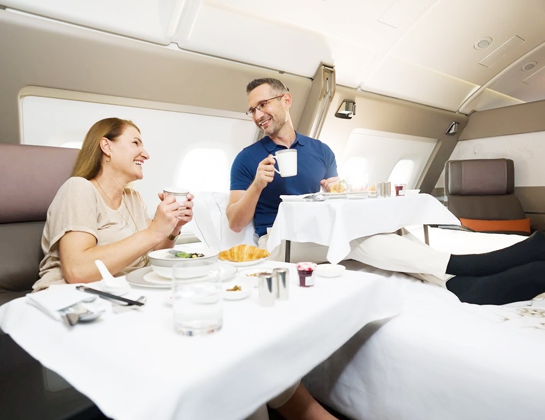 يُحوِّل هذا الجناح الفندقي تجربة السفر في الدرجة الأولى من مجرد مقعد إلى مساحة فاخرة متكاملة تتضمن: