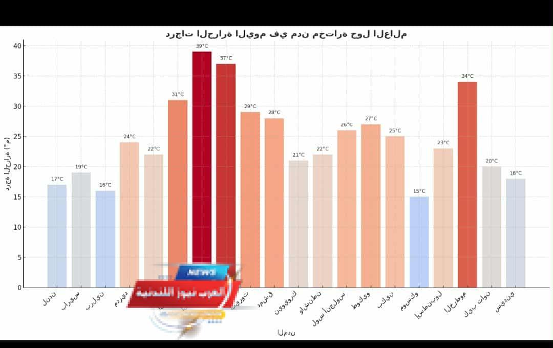 “في إطار متابعتها اليومية، تقدم لكم العرب نيوز اللندنية نشرة الطقس العالمية، حيث نسلط الضوء على حالة الأجواء ودرجات الحرارة في مختلف القارات، من أوروبا إلى الشرق الأوسط وآسيا والأمريكتين وأفريقيا، لتبقى على اطلاع دائم بأحوال الطقس حول العالم.”