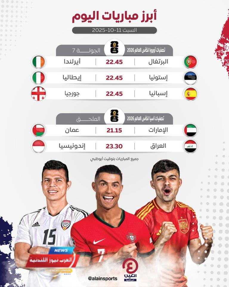 مباريات اليوم السبت 11 أكتوبر 2025 ….