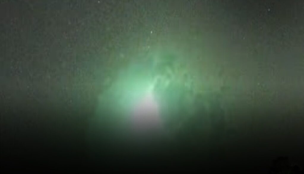 وأظهرت اللقطات وميضًا أخضر ساطعًا تبعته ومضات قوية خلال ثوانٍ،