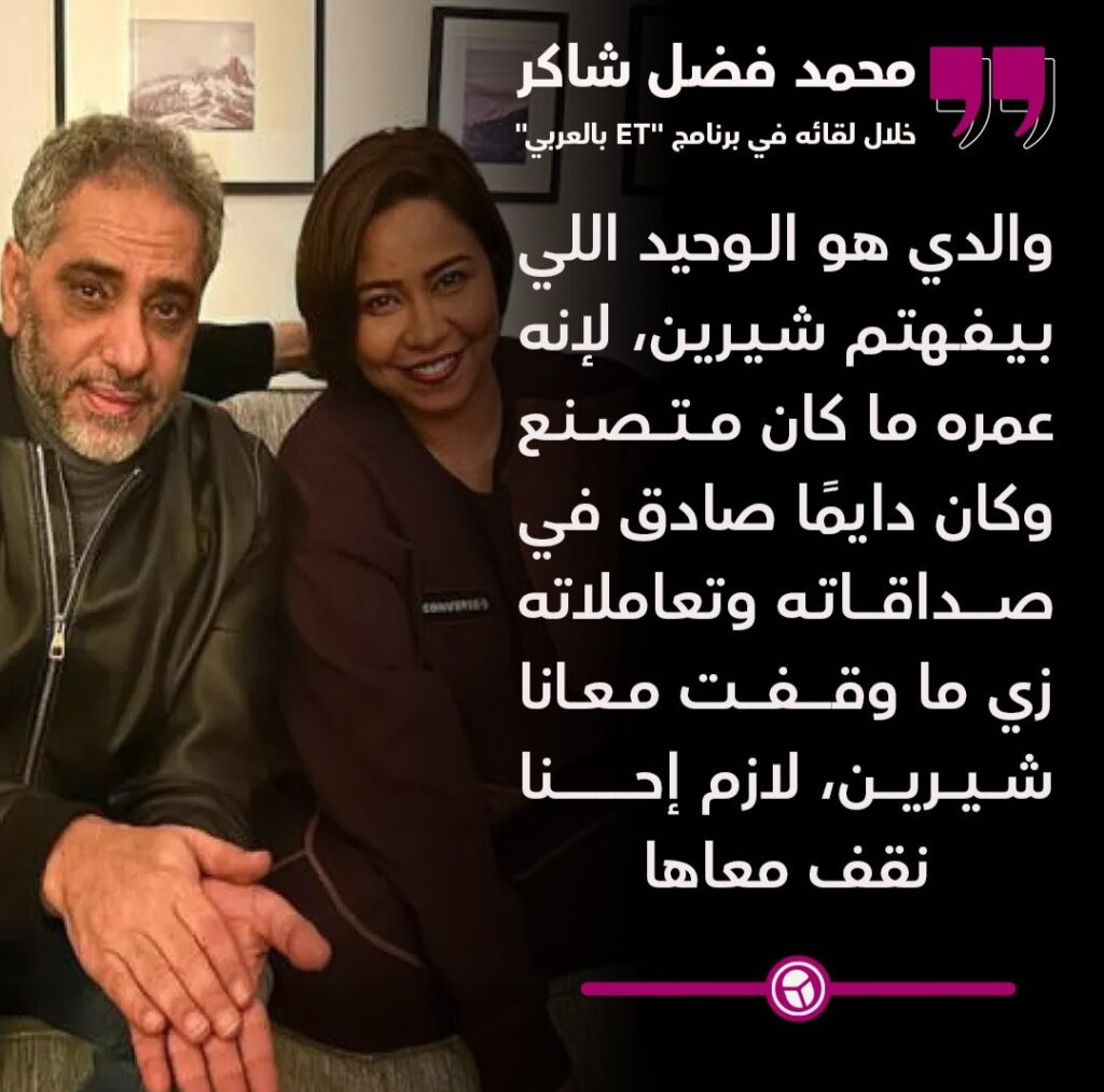 وقال فضل شاكر في تصريحات متداولة عبر وسائل إعلام ومنصات التواصل الاجتماعي: «لازم نقف مع شيرين زي ما وقفت معانا»، في إشارة إلى مواقفها السابقة الداعمة لعدد من الفنانين، ومن بينهم والده الفنان فضل شاكر خلال فترات صعبة مرّ بها.