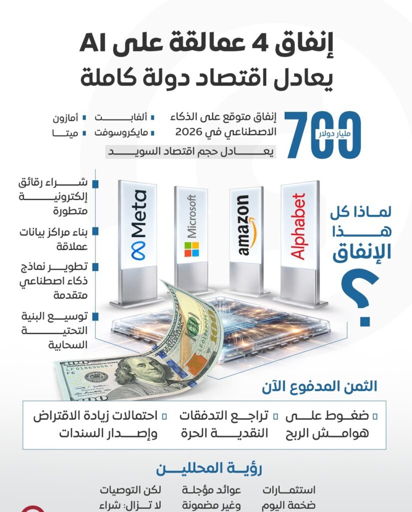 إنفاق 4 شركات على الذكاء الاصطناعي في 2026 يعادل اقتصاد دولة بأكملها