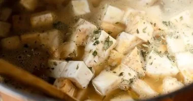 قبل الطهي، غسلي القلقاس جيدًا واغسليه بعد التقشير لتتخلّصي من “لزوجته” — هذا يخلي ملمسه وطعمه أنظف.