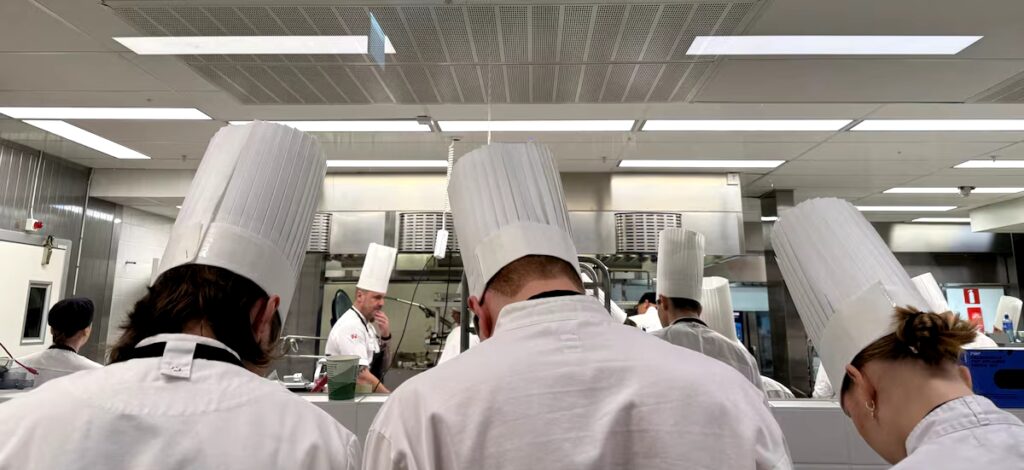 ويحمل إعداد المأدبة لمسة عائلية للطهاة، حيث جُددت أدوات المائدة لأول مرة منذ أكثر من ثلاثين عاماً، بما في ذلك سكاكين مصنوعة يدوياً من خشب البلوط بمشاركة شقيق لو.