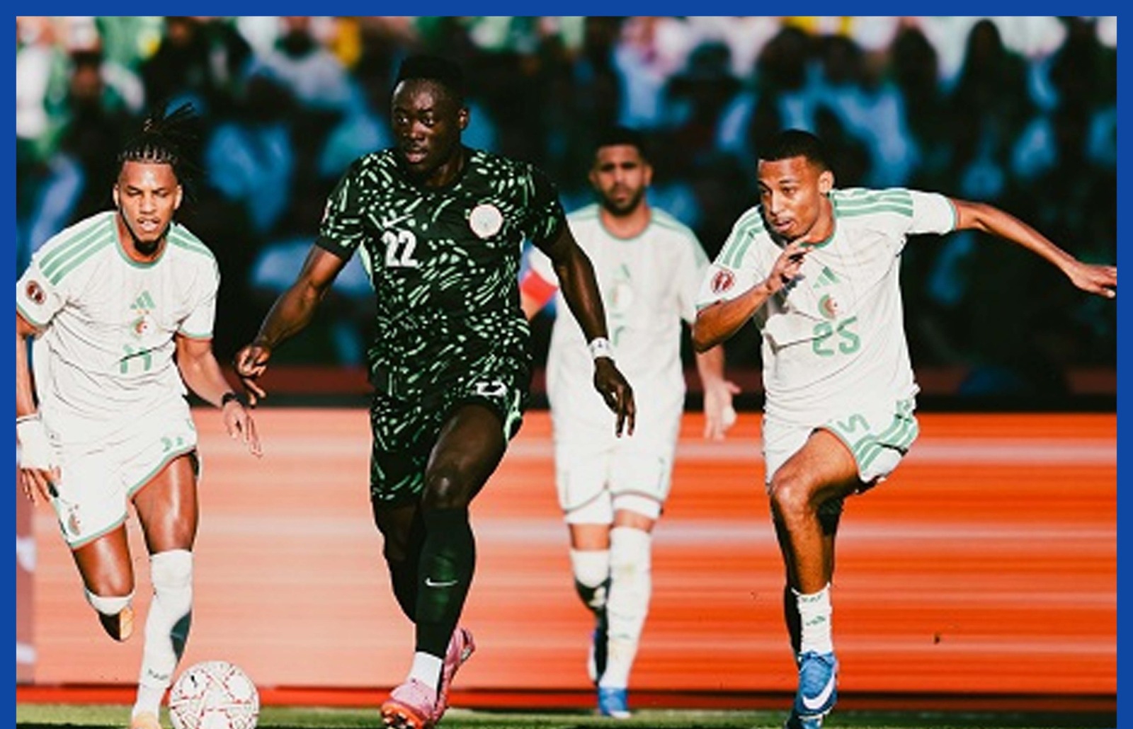 وجاءت المباراة متكافئة في معظم فتراتها، حيث دخل المنتخبان بحذر واضح نظرًا لأهمية اللقاء، مع تبادل للهجمات والفرص دون تهور. ونجح المنتخب النيجيري في استغلال إحدى الفرص الحاسمة، مترجمًا تفوقه البدني والسرعة في التحولات الهجومية إلى هدف منح “النسور الخضر” الأفضلية وأربك حسابات المنتخب الجزائري.