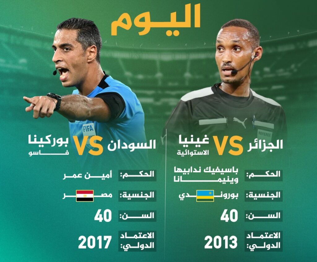 وفي سياق متصل، قررت لجنة الحكام إسناد مهمة إدارة مباراة الجزائر وغينيا الاستوائية إلى حكم من بوروندي، ضمن الجولة نفسها من دور المجموعات، في مواجهة مرتقبة تحمل أهمية كبيرة لحساب التأهل إلى الدور المقبل.