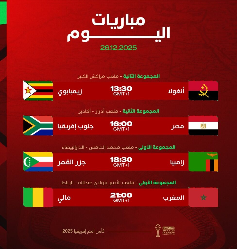 وتتجه الأنظار بشكل خاص إلى قمة المغرب ومالي، في واحدة من أقوى مباريات الجولة، حيث يسعى المنتخبان لحسم الصدارة مبكرًا وتفادي الحسابات المعقدة في الجولة الأخيرة.