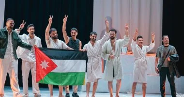 العمل — من إخراج هشام سويدان — يستعرض هشاشة الرجال والصراعات الداخلية تحت ضغوط قوالب الرجولة عبر فضاء الحمّام الشعبي، في رسالة قوية عن الصراع النفسي والاجتماعي… لكن الختام برفع علم فلسطين أضفى على العرض بعدًا سياسيًا وإنسانيًا، مؤكدًا على التضامن المسرحي مع معاناة الشعب الفلسطيني.