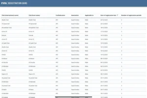 وفي المقابل، استمر حظر تسجيل اللاعبين على عدد من الأندية السعودية الأخرى نتيجة نزاعات مالية أو تعاقدية، ليصل إجمالي القرارات الدولية الصادرة ضد الأندية السعودية إلى 45 قرارًا تشمل عقوبات مختلفة وملفات متكررة على أندية متنوعة.