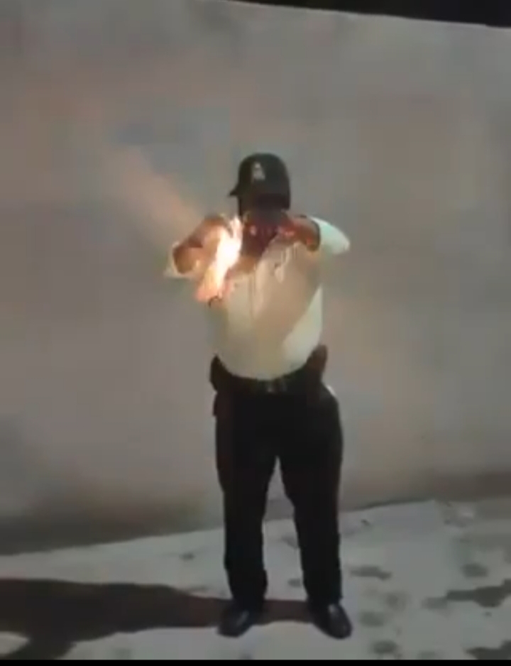 ظهور عنصر أمن إيراني في مقطع مصوّر يحرق صورة خامنئي ويكتب شعار «جاويد شاه»