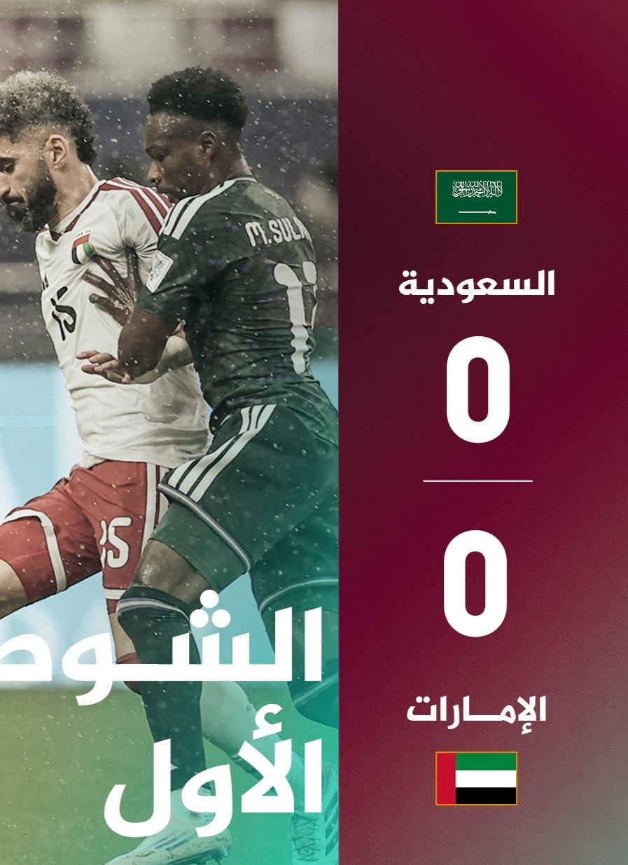 تعادل سلبي بين السعودية والإمارات في شوط أول باهت