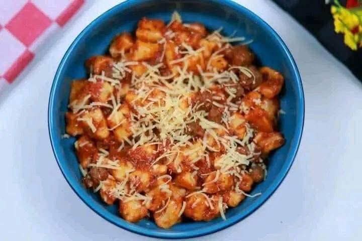 7. *قدم النيوكي* ساخنًا مع جبنة بارميزان مبشورة (إذا رغبت).
