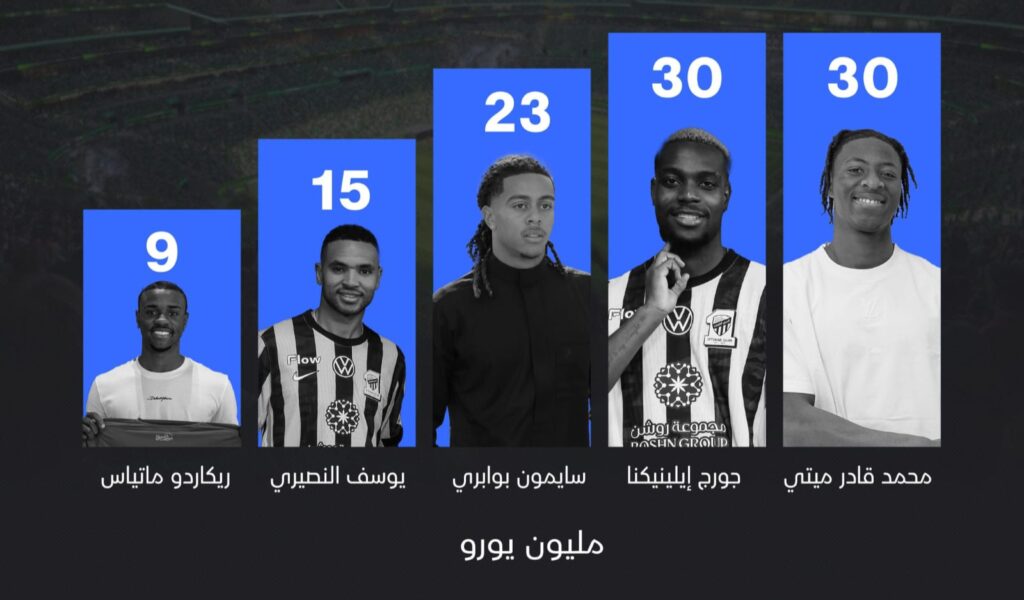 وجاء في المركز الثاني النيجيري جورج إيلينيكا، بقيمة مماثلة بلغت 30 مليون يورو، في واحدة من أبرز الصفقات التي عكست استمرار الرهان على المواهب النيجيرية في الدوري السعودي.
