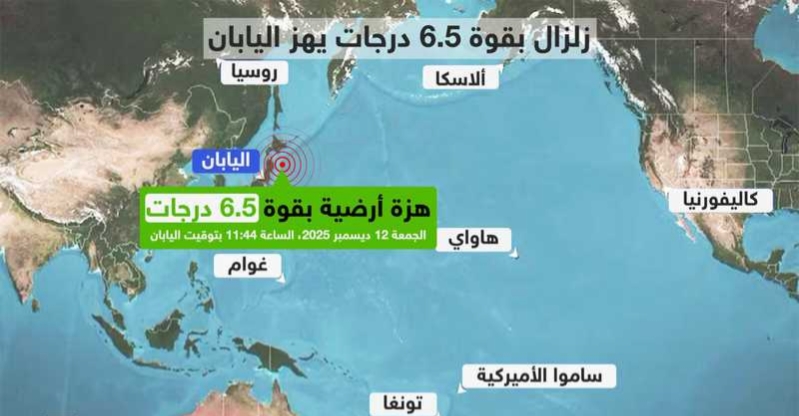ووقع الزلزال بقوة أولية بلغت 6.5 درجات اليوم الجمعة في الجهة الشمالية الشرقية من اليابان، ما دفع السلطات إلى تفعيل التحذيرات الخاصة بالمد البحري.