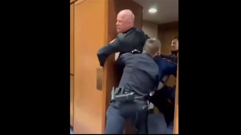 وأظهر الفيديو لحظة تقييد ماكجينيس وسحبه نحو الباب لإخراجه بالقوة، فيما تدخل السيناتور تيم شيهي خلال الاشتباك، حيث ساعد في السيطرة على الضابط السابق، وهو ما أثار موجة من الانتقادات بسبب التعامل العنيف مع جندي سابق احتج من أجل السلام.
