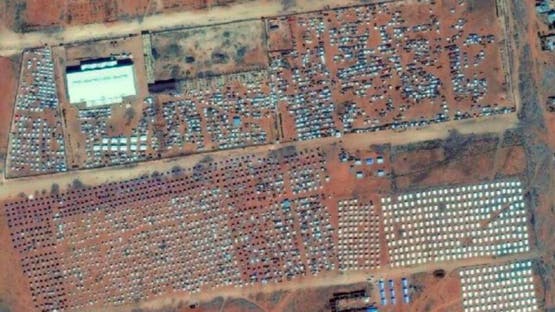 وتنوعت الملاجئ بين خيام صغيرة زرقاء وأخرى بيضاء أكبر حجمًا، إضافة إلى خيام تحمل علامات داكنة على أسطحها، بينما أظهرت صور ميدانية أن عددًا منها يحمل شعار مركز الملك سلمان للإغاثة والأعمال الإنسانية. ولا تزال مدينة الأبيض تمثل نقطة عبور رئيسية للمدنيين الفارين من العنف في المناطق الجنوبية، خاصة مع تصاعد الهجمات في الدلنج وكادوقلي.